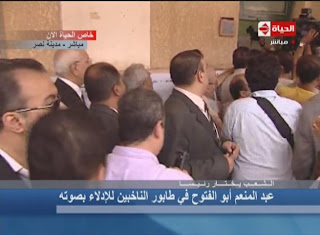 Abu El Fotouh has arrived to Ibn El Nafis school polling station in Nasr City , he is refusing to speak to the media also.